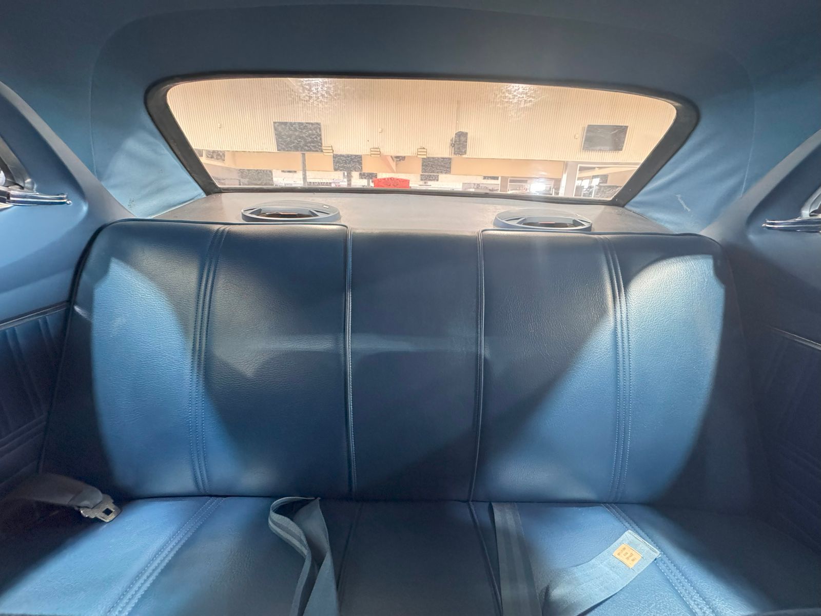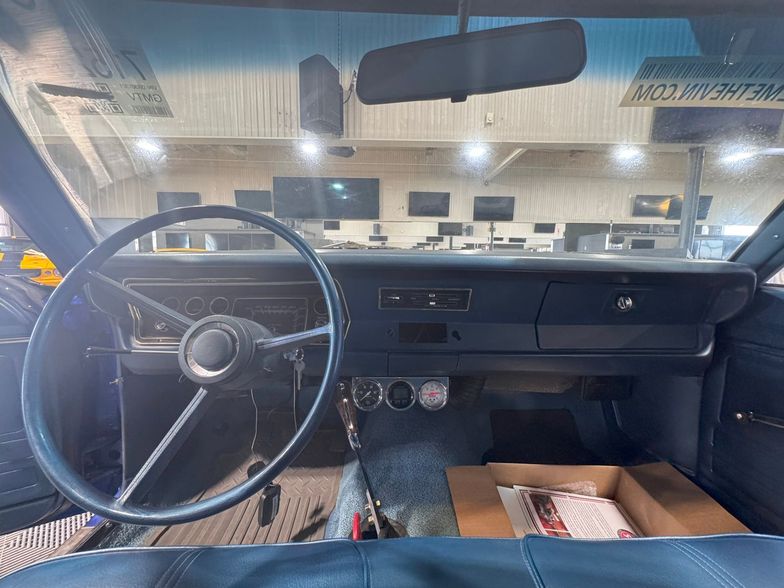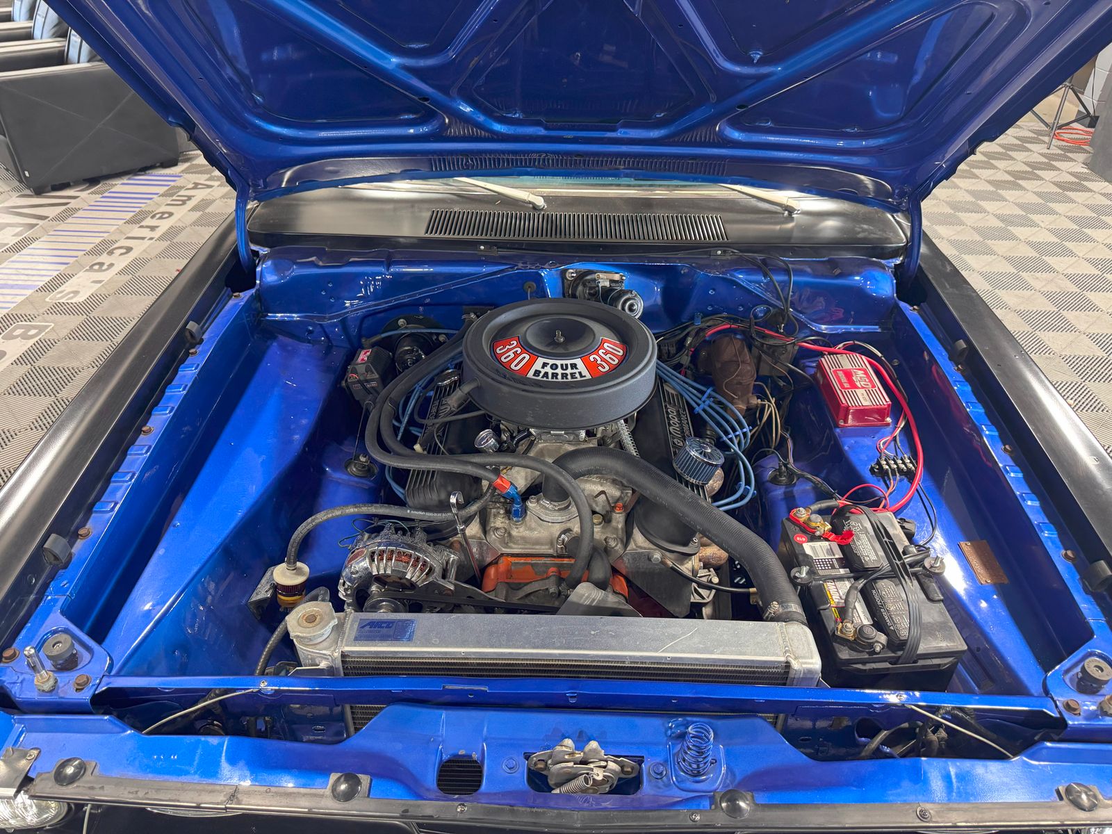 This 1970 Plymouth Duster is powered by a 360 cubic inch V8 with a 4-speed manual transmission. This was a nut-and-bolt restoration, with the chassis and suspension all powder-coated and refinished. The engine is stock in appearance, with MSD ignition, headers, Mopar valve covers, and an aftermarket aluminum intake. The interior is done in stock fashion with a pistol grip shifter, factory gauges, and a bench seat. The exterior was restored recently with the correct B5 blue finish and 360 vinyl Billboard decals, and a flat black snorkel hood. The suspension has been lowered 3" and is sitting on chrome American Torq wheels with performance tires.